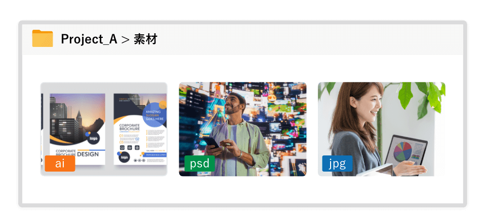 ファイルを開かないと中身が見えない汎用ストレージとは異なり、直感的にハンドリングでき、制作進行がスムーズに。